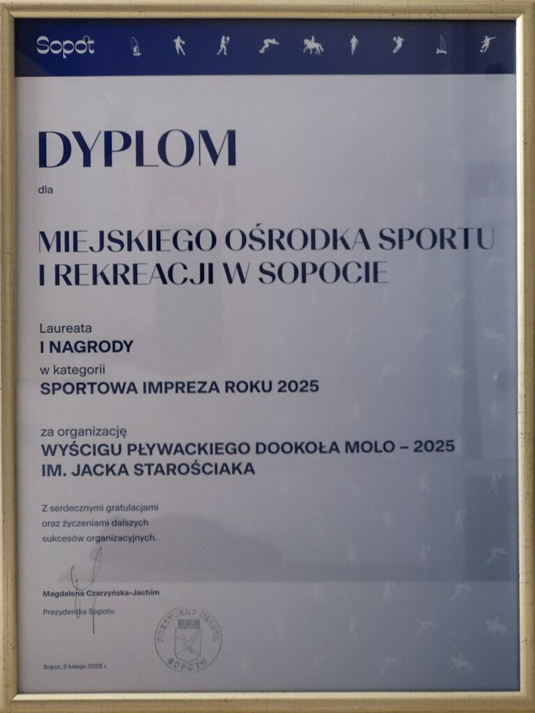 Miano SPORTOWEJ IMPREZY ROKU 2025 otrzymały Wyścigi Pływackie dookoła Molo im. Jacka Starościaka, organizowane przez MOSiR w Sopocie.