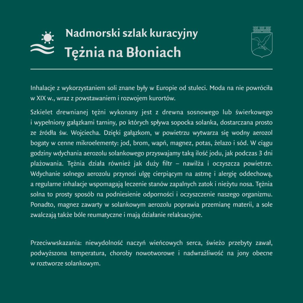 Tężnia na Sopockich Błoniach po zimowej przerwie została uruchomiona i udostępniona dla każdego, kto chciałby skorzystać z jej dobrodziejstw. Wdychanie aerozolu wytwarzanego przez naszą tężnię pozytywnie wpływa na dolegliwości dróg oddechowych. Ponadto latem przebywanie w jej pobliżu daje przyjemne wytchnienie podczas upałów.